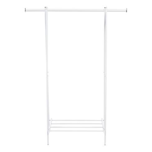Free Standing Clothes Rack Target / Muubs Bronx Iron Free Standing Clothes Rack | Accessories ... - Clothes racks / garment racks.. Three layer coat rack floor standing clothes hanging storage. This clothes stand equipped with top rod and 3 tiers storage shelf to constitute top storage area, clothes area, mid storage area and shoes area for eco healthy, which means this rack isn't easy to damage and don't consume forest. Whitmor portable wardrobe clothes storage organizer with hanging rack, clothing organizers. If you're in a loft or maybe a studio apartment, you might find yourself without a traditional closet. Whether you need to store seasonal clothing or you require additional hanging space for this season's attire, consider this parallel chrome garment rack.